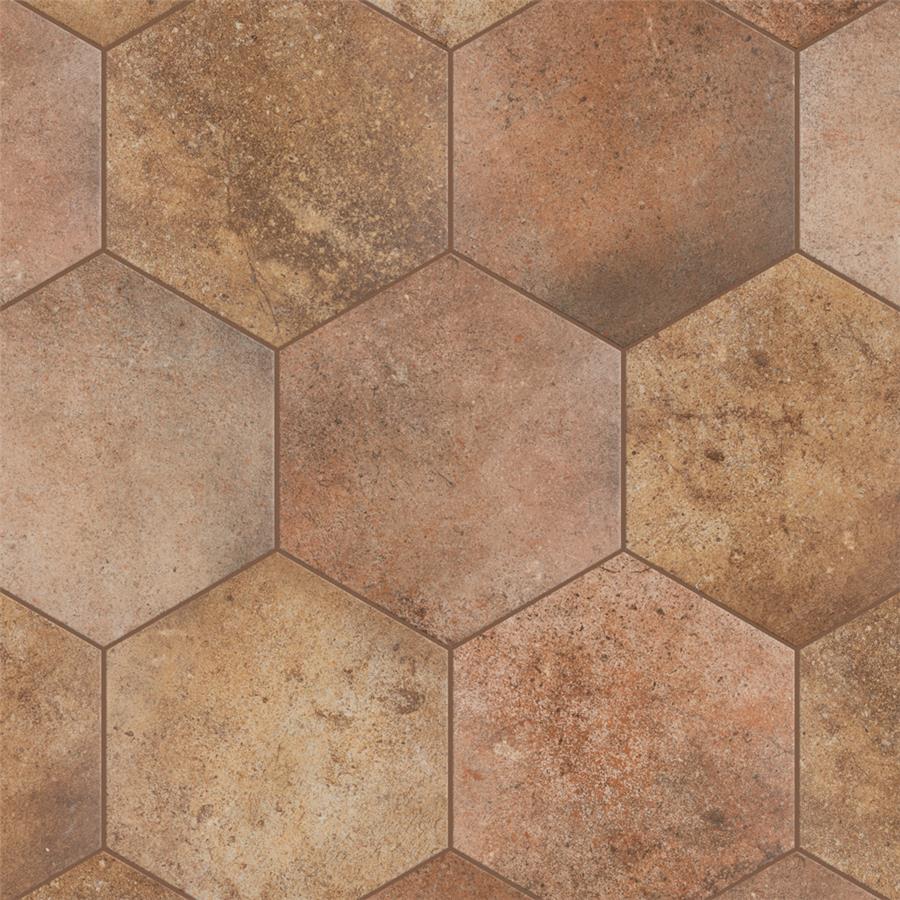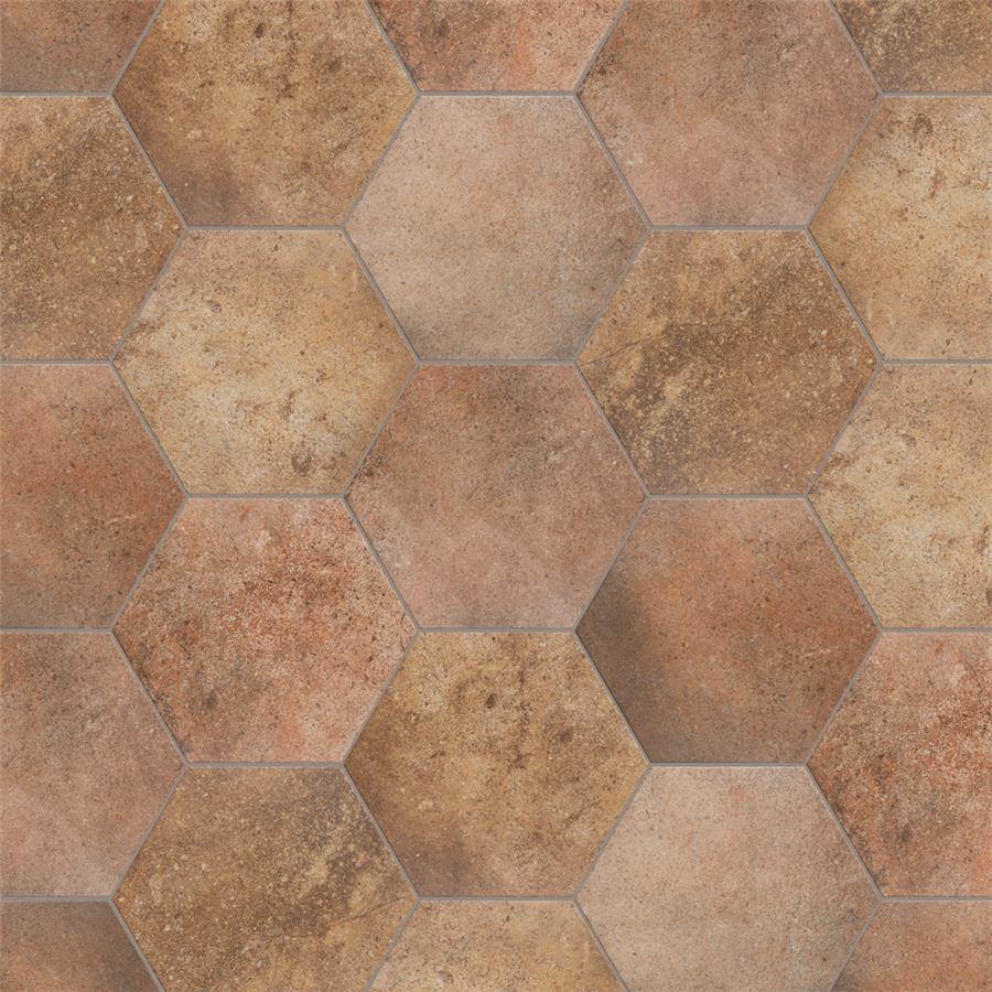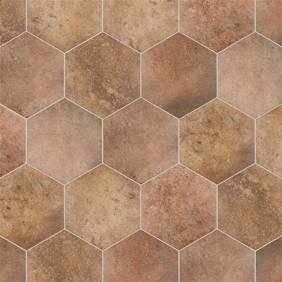 Prestige (by sq. ft.) Porcelain Floor and Wall Tile features a smooth, matte finish. Inspired by the beauty of natural stone and clay, these varying tiles are great for creating a rustic space. Beautiful shades of tans, browns and terra cotta create a unique design that mimics natural stone. This hexagonal tile is perfect for any setting, traditional enough for historical renovations or modern enough for new construction. Being impervious to water, these tiles are ideal for backsplashes and even offer frost resistance for some exterior work. Use these alone or mix and match with other products to create your own custom look.