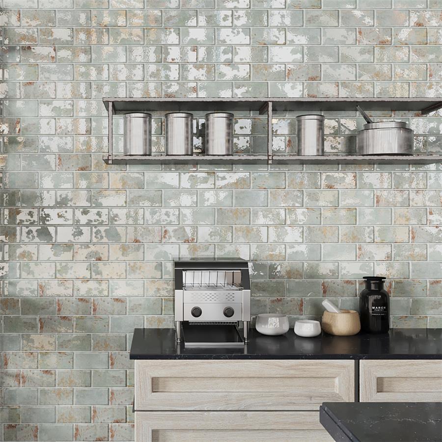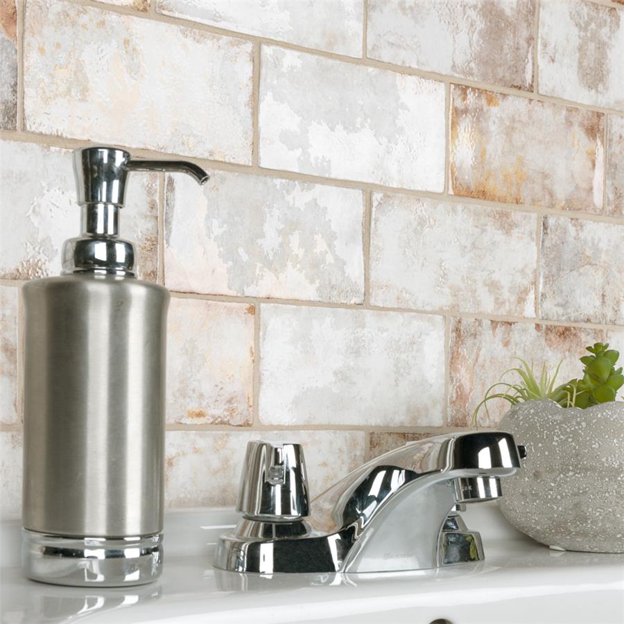 Ambiance (by sq. ft.) Ceramic Subway Wall Tile offers a casual urban appeal. Featuring a worn appearance, this tile is a subtle statement piece created by distressed patterns in five different color ways. With slight undulation and a mixed finish, this subway tile offers a handmade appearance through subtle imperfections that make it look like each tile was handcrafted. Available in eighteen print variations that are randomly scattered throughout each case, the variation throughout each tile mimics an authentic aged appearance. Its glazed feature makes this tile an ideal choice for indoor wall installations including, kitchen backsplashes bathroom showers, and fireplace facades. This tile is a perfect choice on its own or paired with other products in the Biarritz Collection.