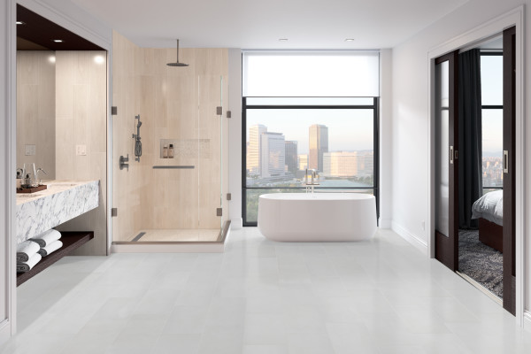 Contemporary styling offers urban aesthetic. Beautifully replicates the look of concrete. Ideal for floors and walls. Perfect for residential and commercial use. Great for pools and spas. Multiple sizes available with matching trim. Glazed body match porcelain with matte finish. P.E.I Rating 4. Suitable for residential use, heavy traffic, and commercial use, considerable traffic. V2 Medium Shade Variation. Color variation within each tile.
