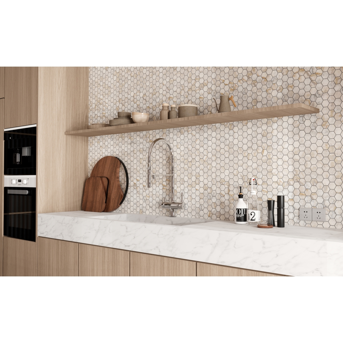 Forever (by sq. ft.) A luxurious marble stone tile that exudes timeless elegance. This stunning tile features striking gold veining set against a backdrop of classic white marble, creating a sophisticated and opulent look. Calacata Giallo adds a touch of luxury and refinement to any room.
