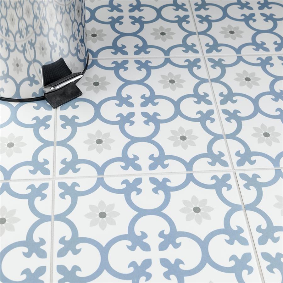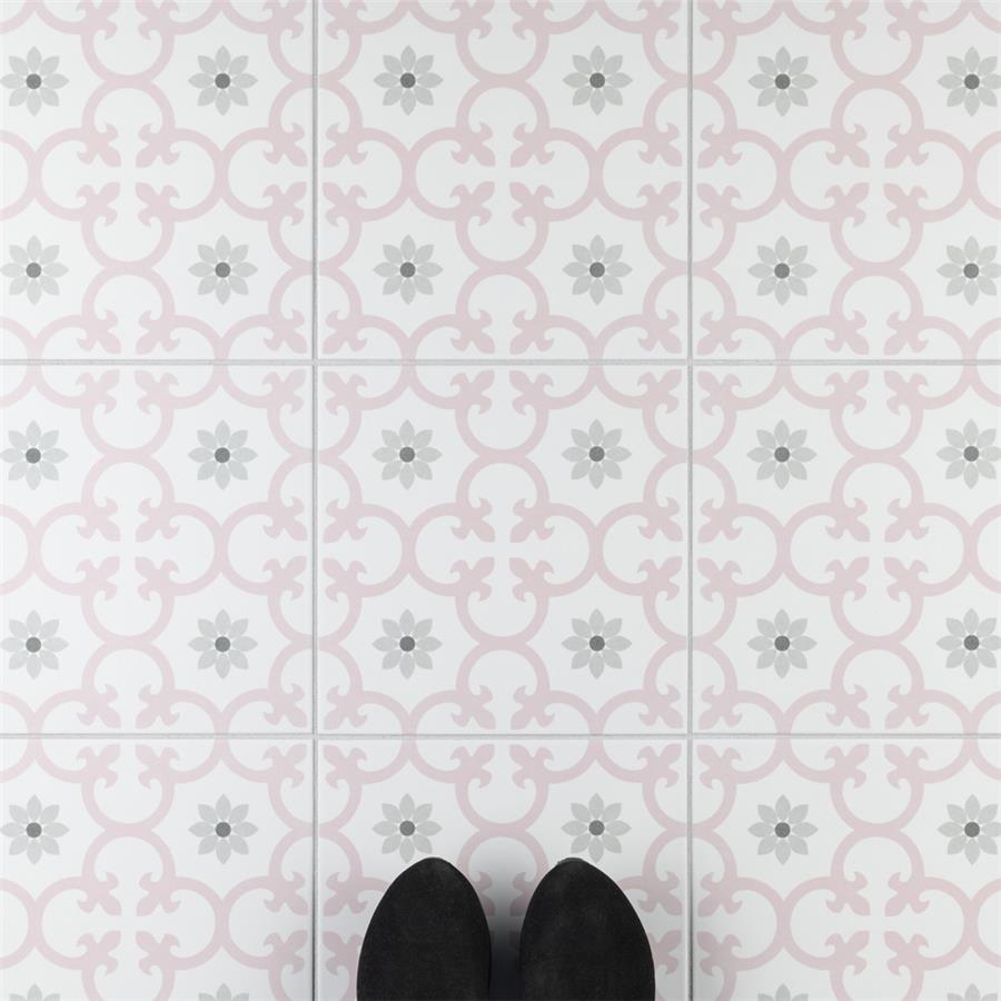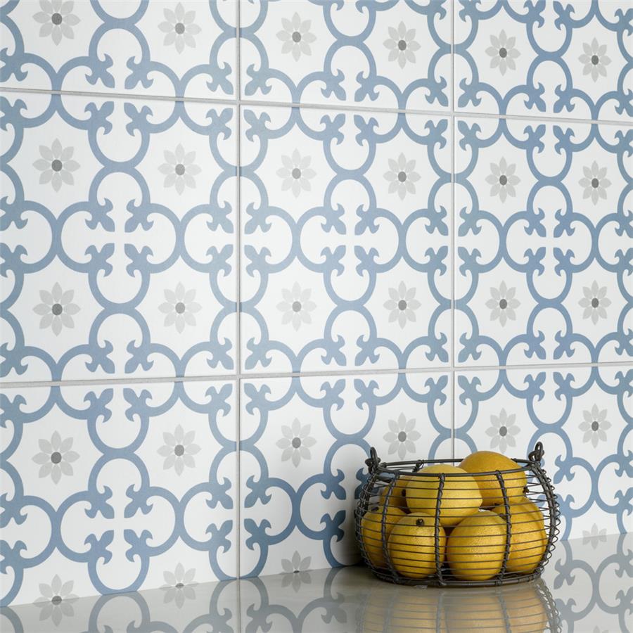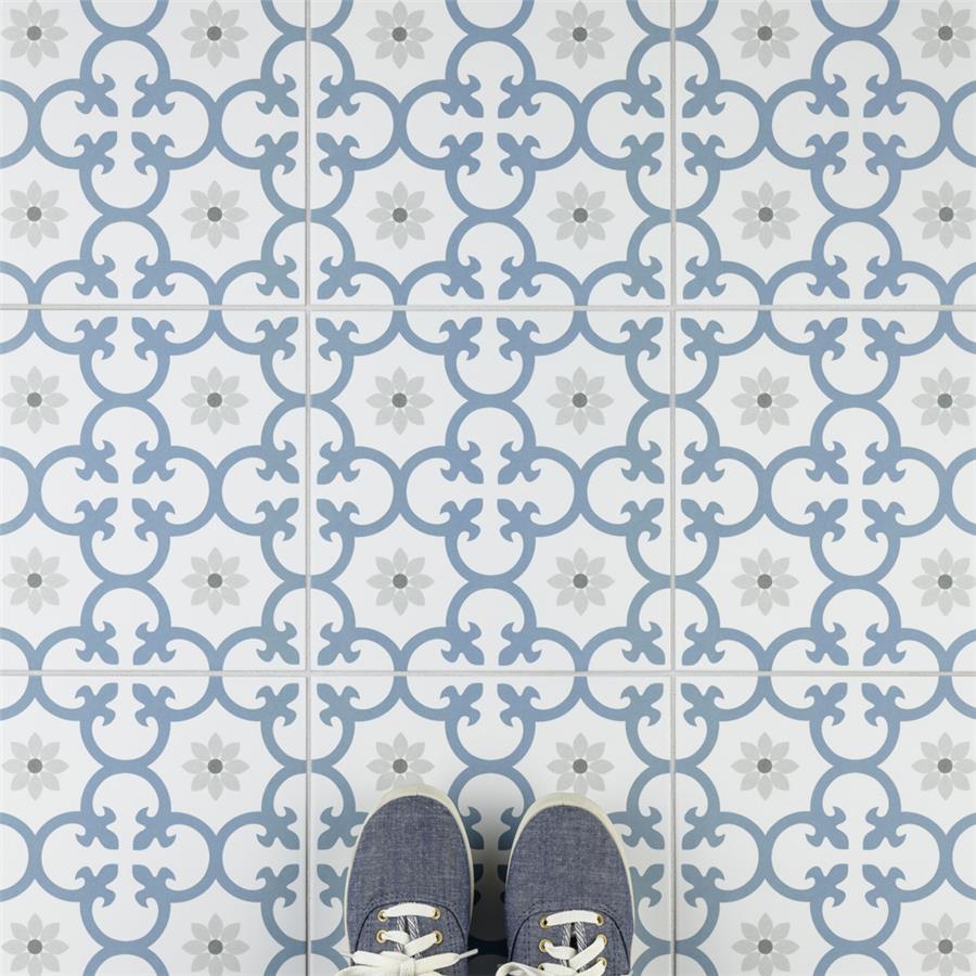 Ambiance (by sq. ft.) Porcelain Floor and Wall Tile This encaustic inspired tile pattern will liven up any space and give it a modern spin. Its geometric design is unique yet simplistic enough to integrate into any design, ranging from traditional style renovations to modern home projects. The matte glazed surface adds extra character to this unique artistic tile. Its impervious, frost resistant and durable features make this an ideal tile for both commercial and residential indoor and outdoor use, including backsplashes, bathrooms, kitchens and patios. This tile is a perfect choice on its own or coordinate with other products in the Daria series.
