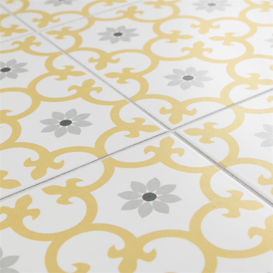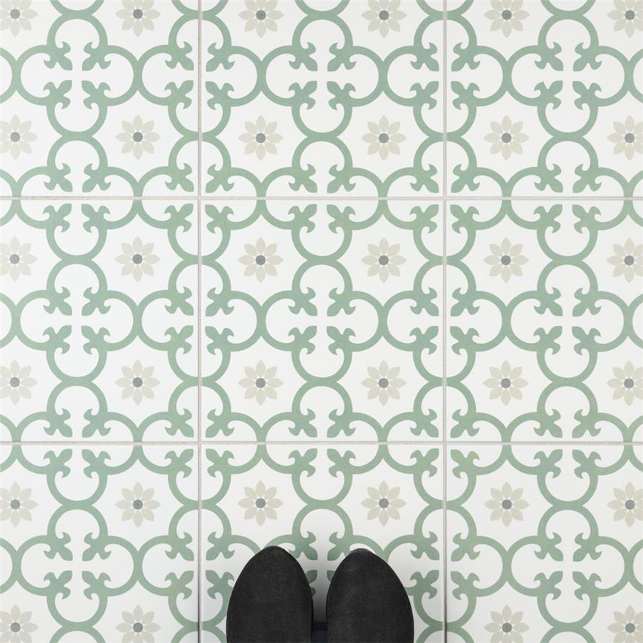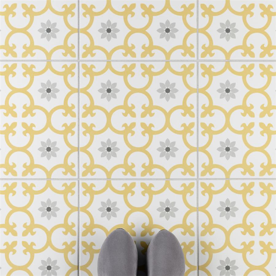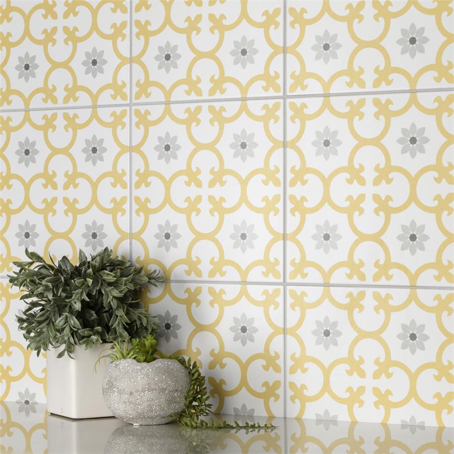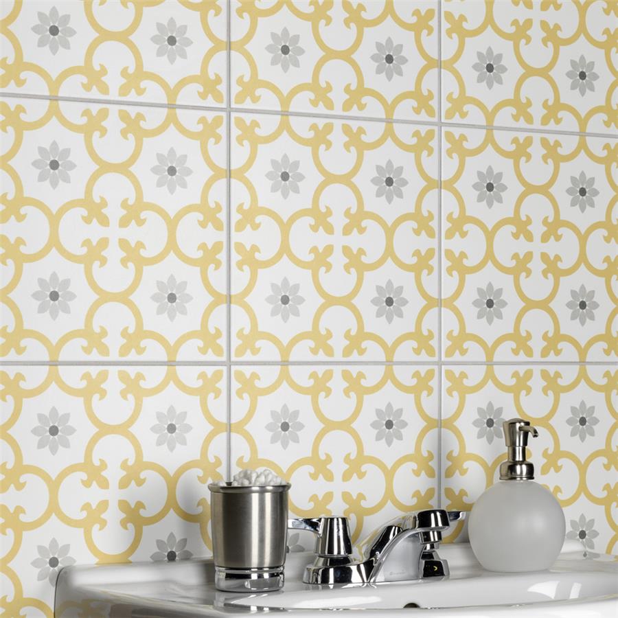 Ambiance (by sq. ft.) Porcelain Floor and Wall Tile This encaustic inspired tile pattern will liven up any space and give it a modern spin. Its geometric design is unique yet simplistic enough to integrate into any design, ranging from traditional style renovations to modern home projects. The matte glazed surface adds extra character to this unique artistic tile. Its impervious, frost resistant and durable features make this an ideal tile for both commercial and residential indoor and outdoor use, including backsplashes, bathrooms, kitchens and patios. This tile is a perfect choice on its own or coordinate with other products in the Daria series.