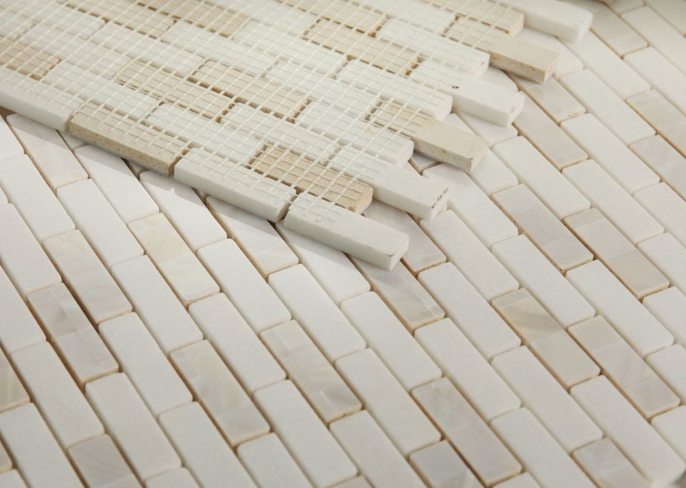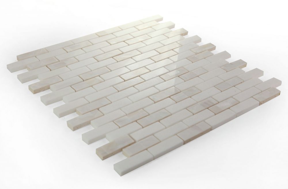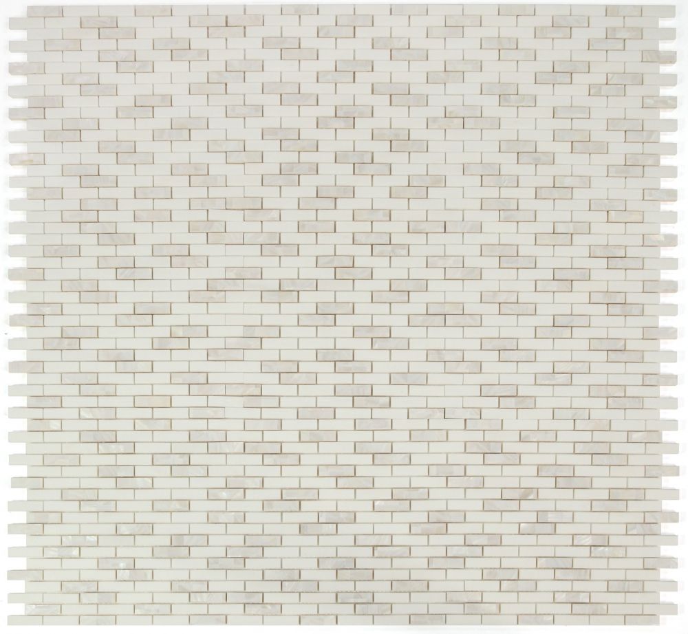 Serenity (by sheet) Diana Linear Calacatta 11.75 x 12 – Calacatta marble and pearl in linear, stacked pattern. Diana Linear Thassos 11.75×12 – Thassos marble and pearl in linear, stacked pattern.