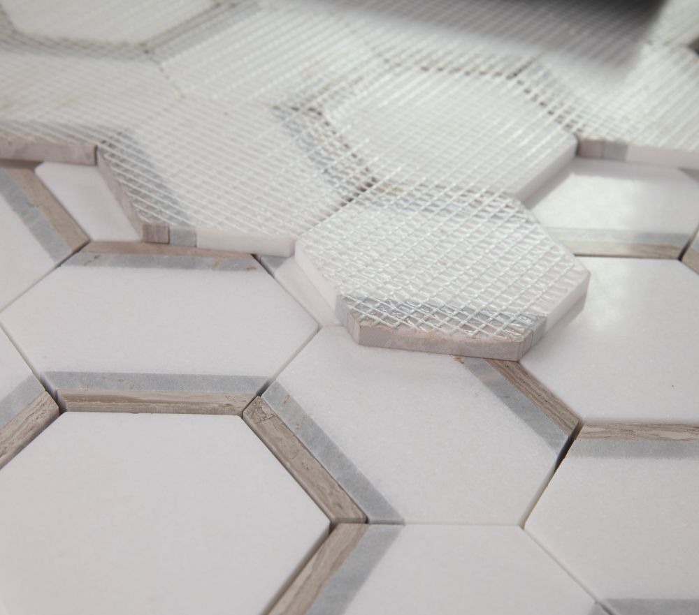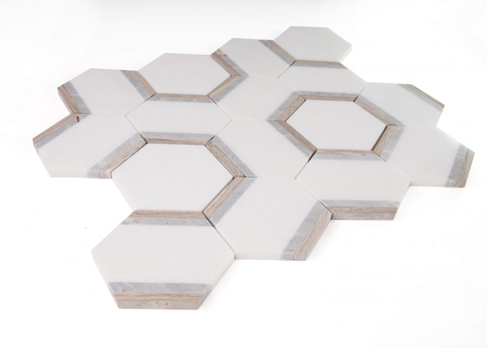 Hexagon Wooden White Honed 4″ x 4″ 12″ x 13.75″