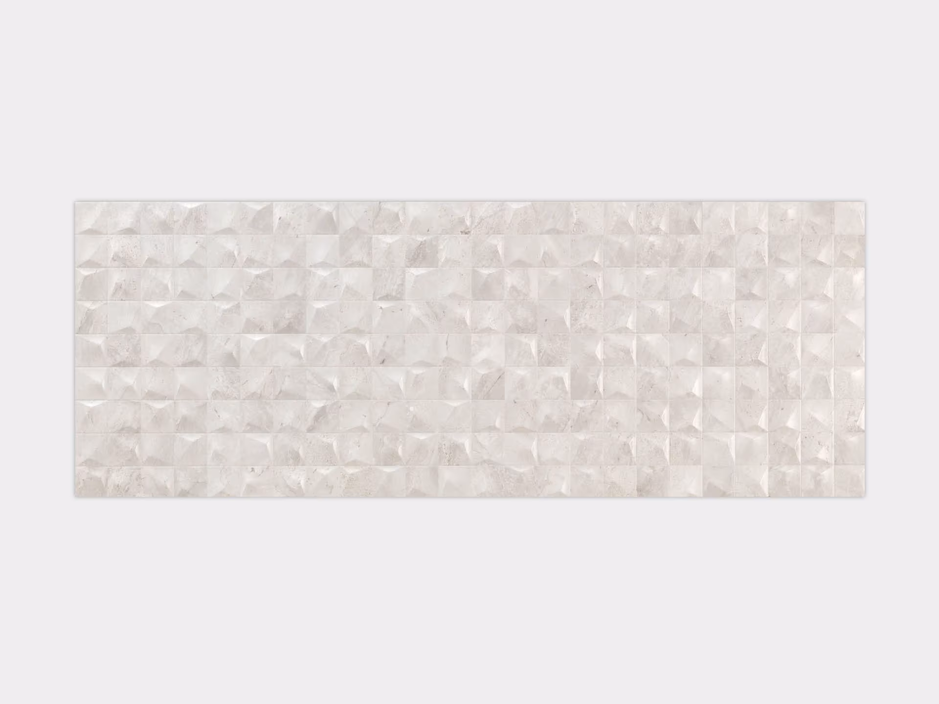 Natural-looking, non-glossy surface finish. General deshaded design with a degree of color and appearance variation. Name given to the finish of those tiles dimensionally improved after the firing process. Wall installation. Finish with clearly defined protrusions that give the surface a feeling of volume.