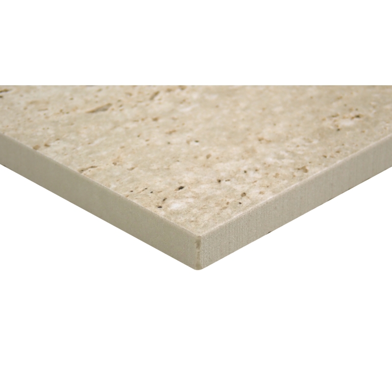 Ambiance (by sq. ft.) Jargon™ glazed porcelain embodies the timeless beauty of classic vein-cut travertine, including the rich allure of Persian red travertine. Reminiscent of freshly quarried stone, its smooth, honed surface exudes sophistication, while the textured tiles add depth and authenticity. Available in three elegant colors, one striking pattern, and three versatile sizes, Jargon delivers a refined aesthetic perfect for timeless and contemporary spaces alike. 1×4/12×12 mosaic trims available.