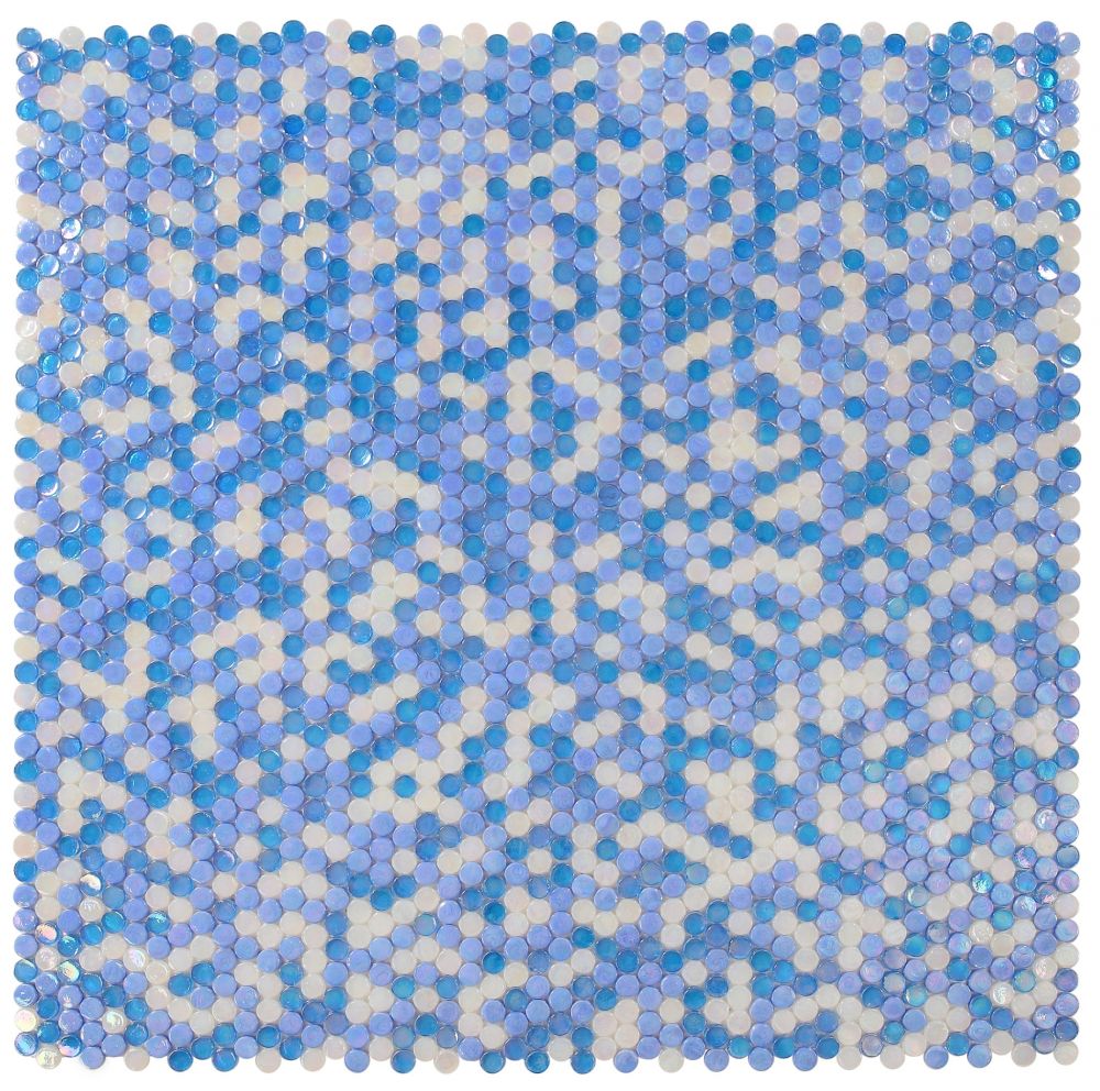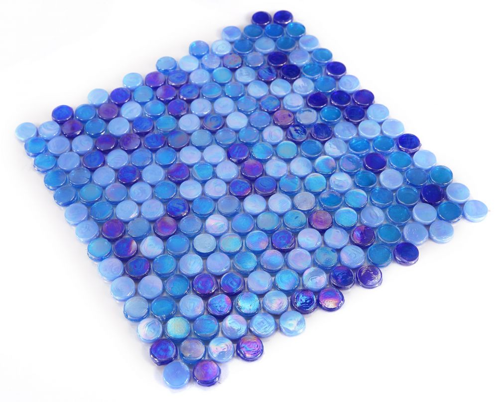 Artisan (by sheet) Laguna Penny 11.25×11.25 – Pool rated glass mosaic of penny shaped pieces. Pool Rated for use in Swimming Pools (Chlorine & Salt Water)