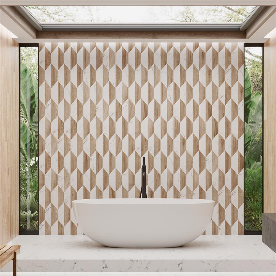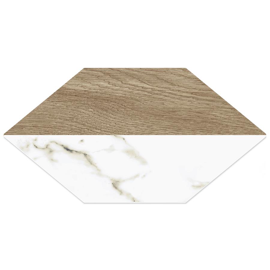 Prestige (by sq. ft.) Porcelain Floor and Wall Tile features a slightly textured, matte finish, providing decorative appeal that adapts to a variety of stylistic contexts. Embrace the harmony of nature with our Llama Kayak Lagom Collection, where the rustic charm of llama planks meets the pristine elegance of marble. Containing 31 different print variations that are randomly distributed throughout each case, this white elongated hexagon tile offers a one-of-a-kind look. With its impervious, frost-resistant features, this tile is an ideal selection for both indoor and outdoor commercial and residential installations, including kitchens, bathrooms, backsplashes, showers, hallways, entryways, patios and fireplace facades. This tile is a perfect choice on its own or paired with other products in the Llama Collection. Tile is the better choice for your space!