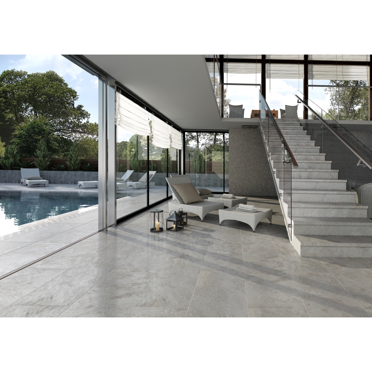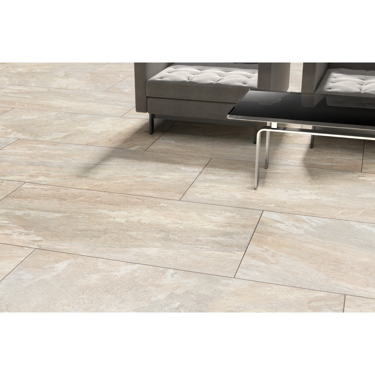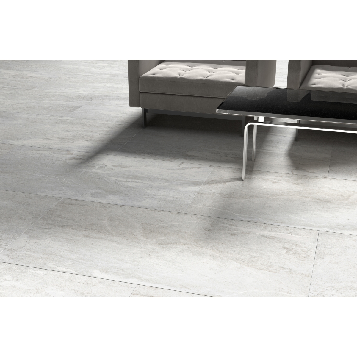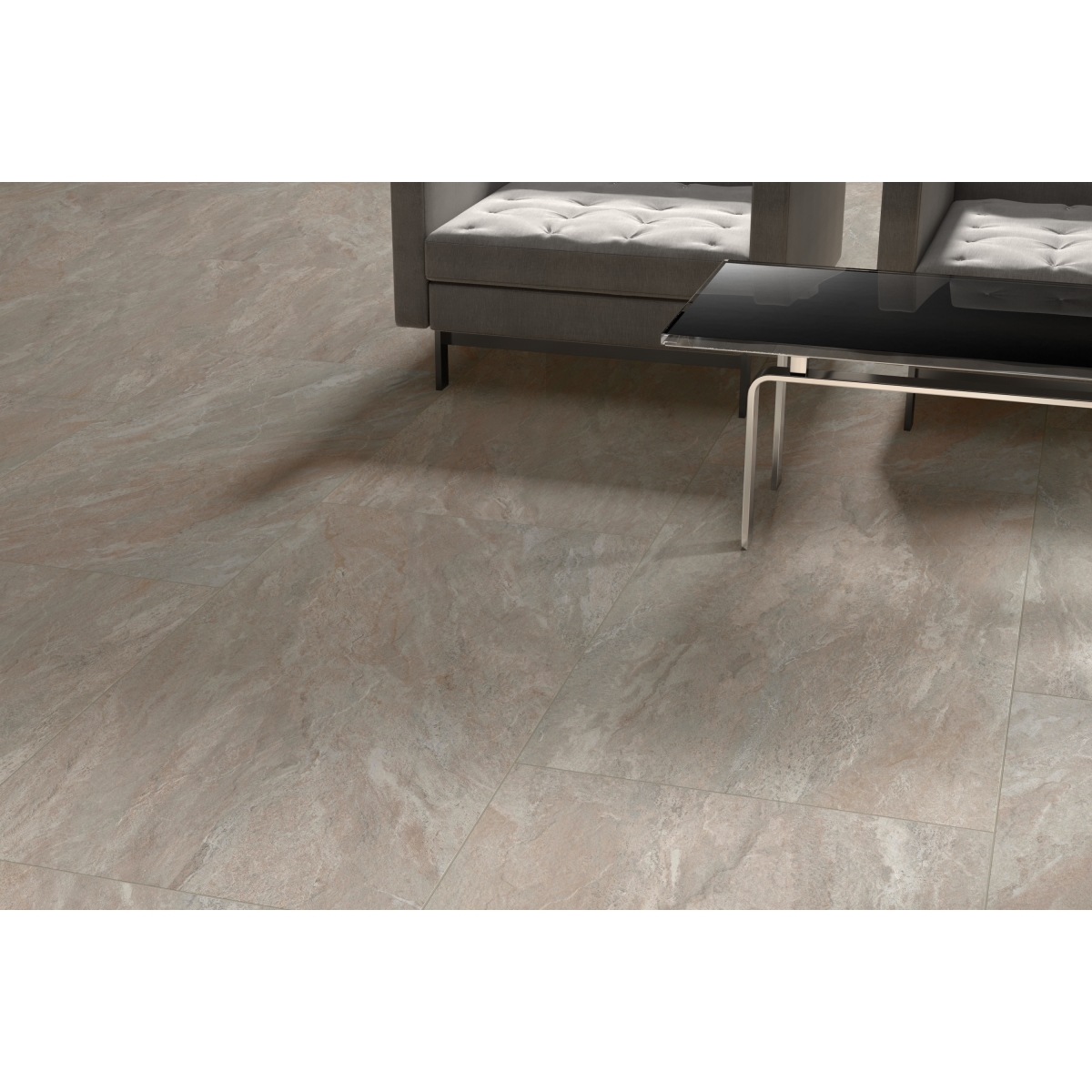 Prestige (by sq. ft.) Milestone™ embodies the organic colors and textures of slate in a durable porcelain tile. High definition printing lends nuanced color and texture variations for a natural aesthetic. Available in various large format sizes for dynamic designs. 3×12 bullnose trim available.