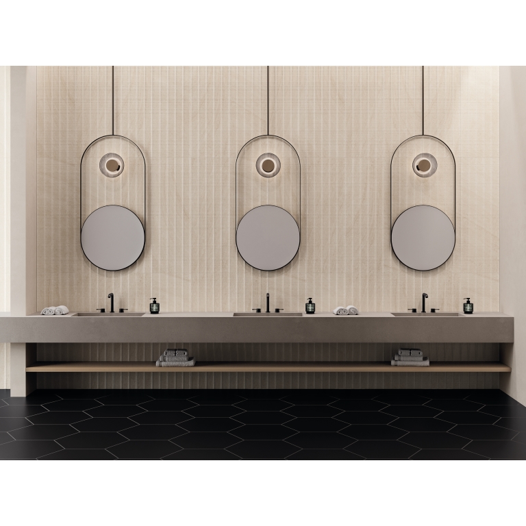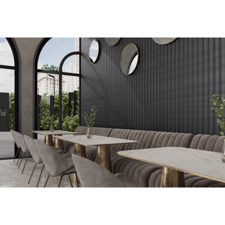 Infinity (by sq. ft.) Navali™ brings modern sophistication to large-format wall design with its subtle ridged texture and elegant matte finish. The 16×47 glazed porcelain panels create a sleek, architectural feel, adding depth and dimension to any space. Refined yet understated, Navali offers a versatile palette ideal for contemporary interiors.
