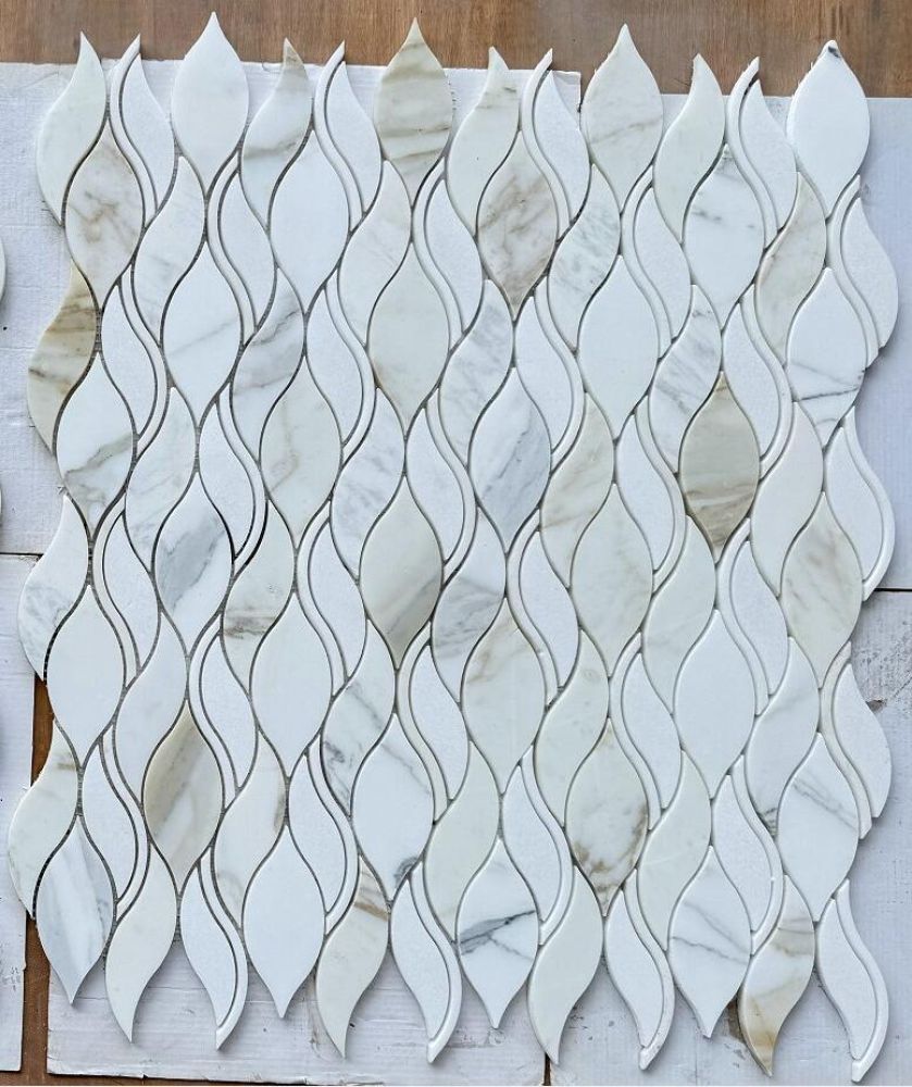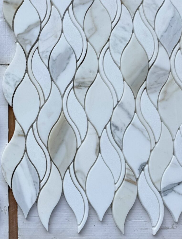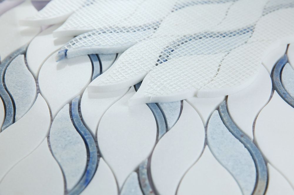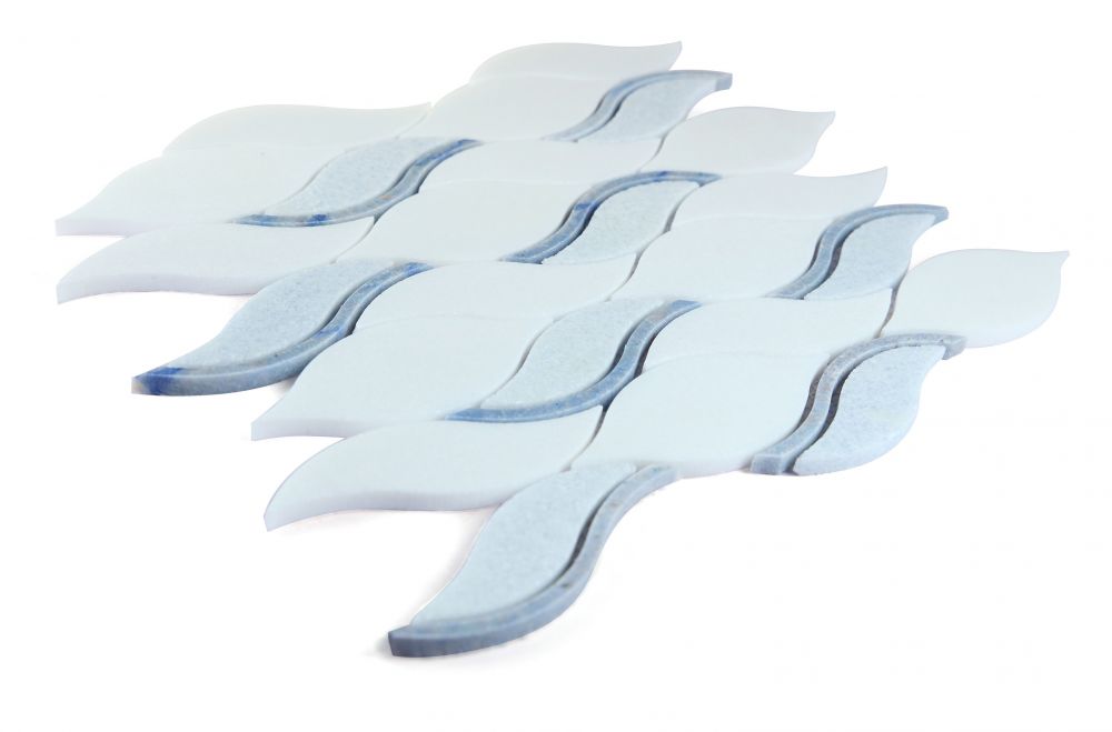 Timeless (by sheet) Pontus Royal Sapphire – Made from a combination of Azul Cielo (Argentina Sky Blue), Azul Macaubas/Macobus, and Greece White. Pontus Royal Calacatta Gold – Oriental White, Calacatta Gold, and Greece Thassos White.