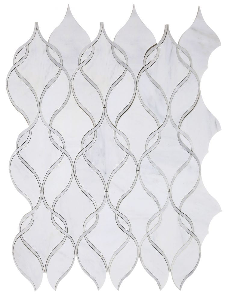 Timeless (by sheet) Prestige Large White 8.75×11 – Water-jet mosaic composed of Grey and White marble in a wave-like pattern. Oriental White.