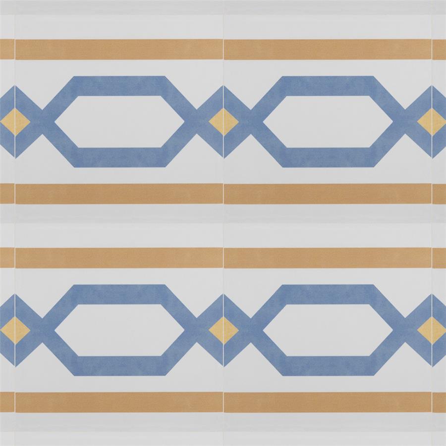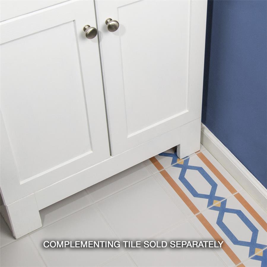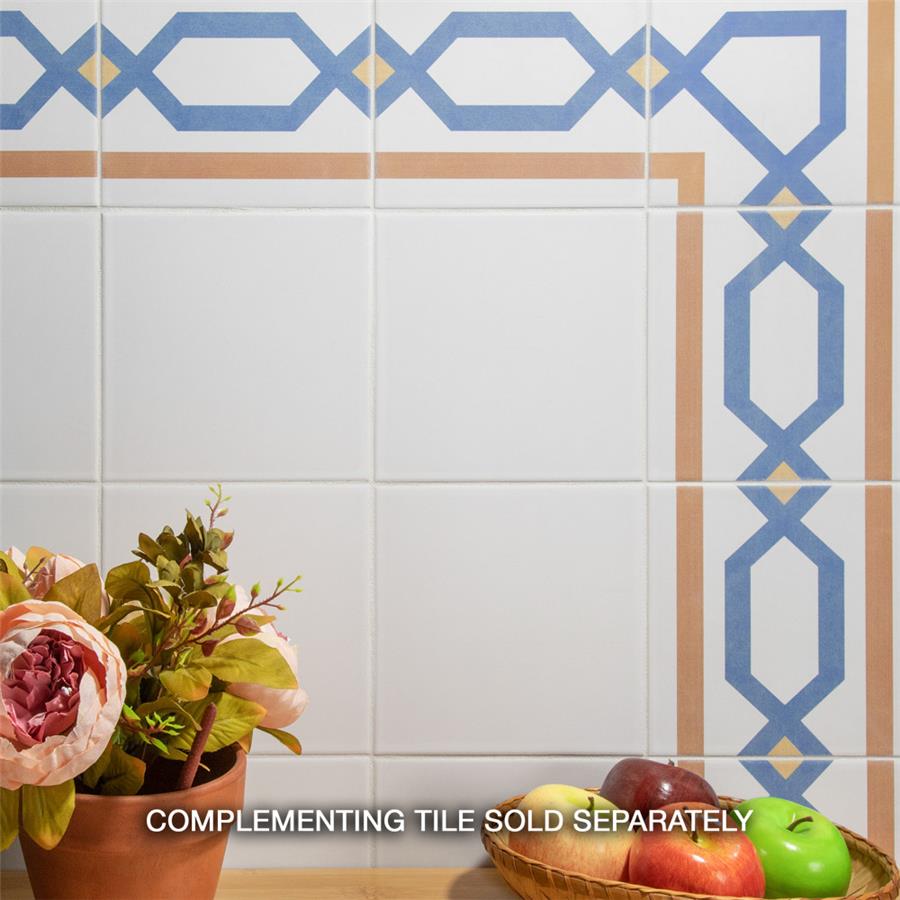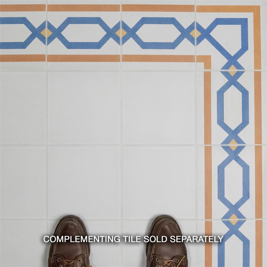 Infinity (by sq. ft.) Ceramic Floor and Wall Tile transforms any space into a work of art through geometric and linear patterns that when laid out, intertwine to create captivating motifs. Composed of rich detail and a smooth surface texture, this floor and wall tile features varying shades of faded orange, pale yellow and cornflower blue set on an off-white base glaze for additional visual dimension. Its durable and frost-resistant features make this an ideal choice for indoor and outdoor installations including kitchens, bathrooms, backsplashes, showers, entryways, patios and fireplace facades.