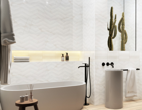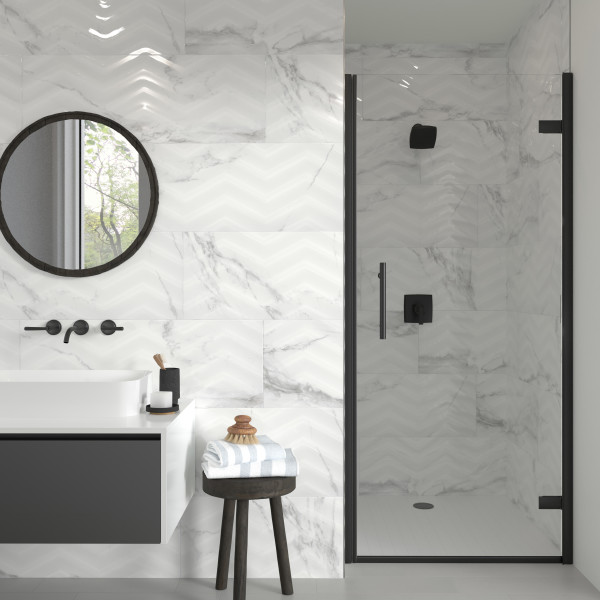 Spanish styling marries modern design in this stylish floor and wall tile. Offered in three distinct colors as well as three patterns including flat, wave and chevron. Great for walls. Perfect for residential and commercial use. For indoor use only. 13″x36″ wall tile and 12″x24″ floor tile. Glazed porcelain/glazed ceramic with satin and glossy finish, dependent on size. P.E.I Rating 0. Suitable for walls only. Floor: V2 Medium Shade Variation. Color variation within each tile; Wall: V1 Low Shade Variation.