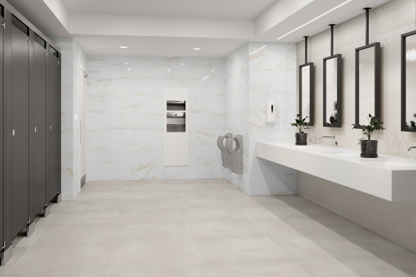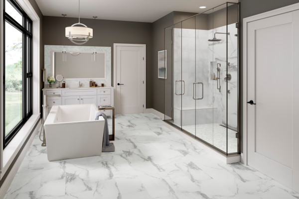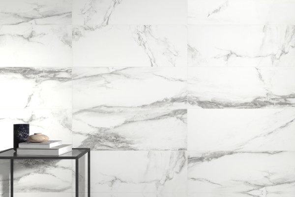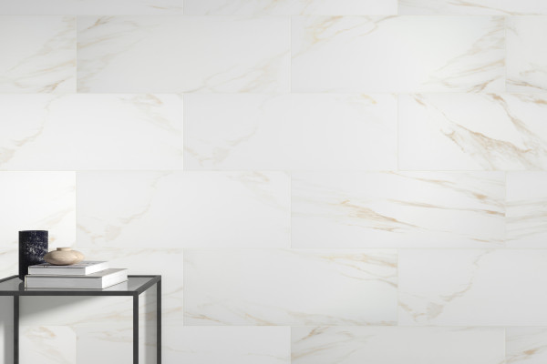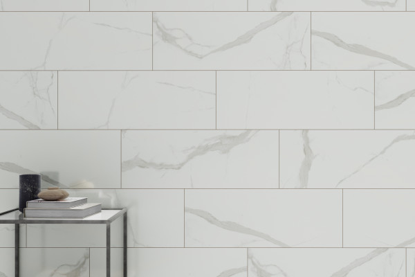 Prestige (by sq. ft.) Sculpture™ is inspired by the artistic beauty of white Italian marble. Sculpture™ is available in a flat matte finish, perfect for floors, along with a gloss finish to coordinate for walls. 3×12 Bullnose trim available.